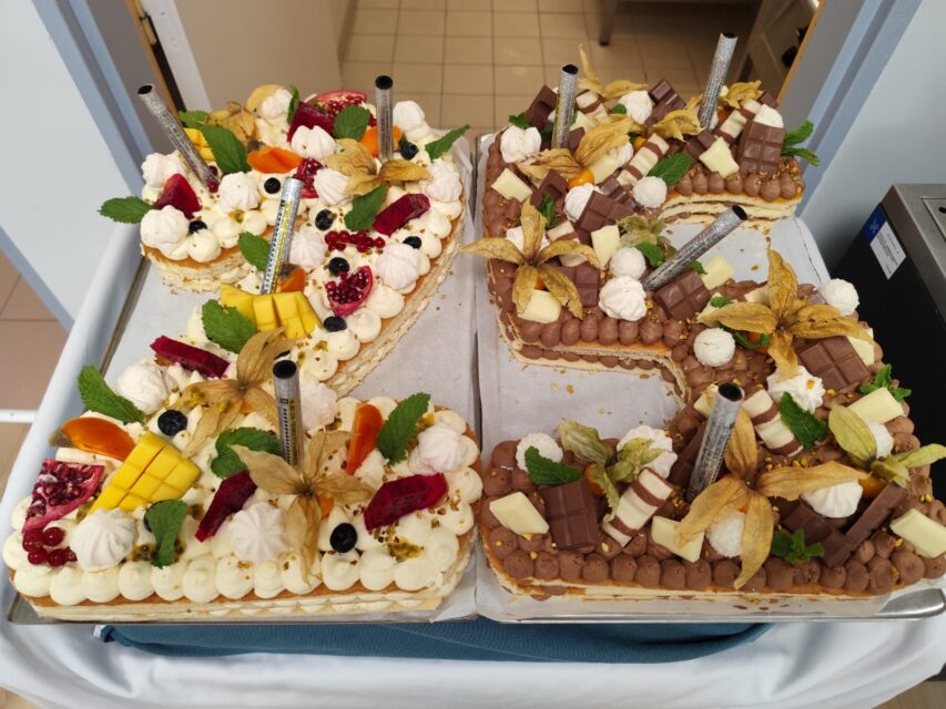 Suite aux discours, les invités ont pu déguster les délicieuses pâtisseries et smoothies proposés par le Chef Medirest et se sont régalés d’un magnifique Number Cake.